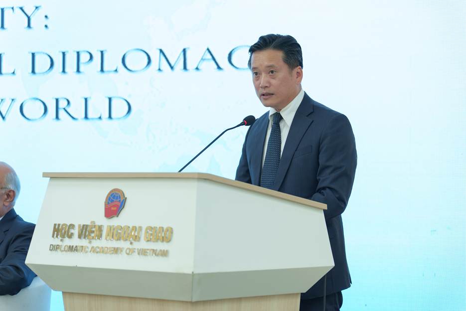 biểu khai mạc, TS. Nguyễn Hùng Sơn, Giám đốc Học viện Ngoại giao, khẳng định chủ